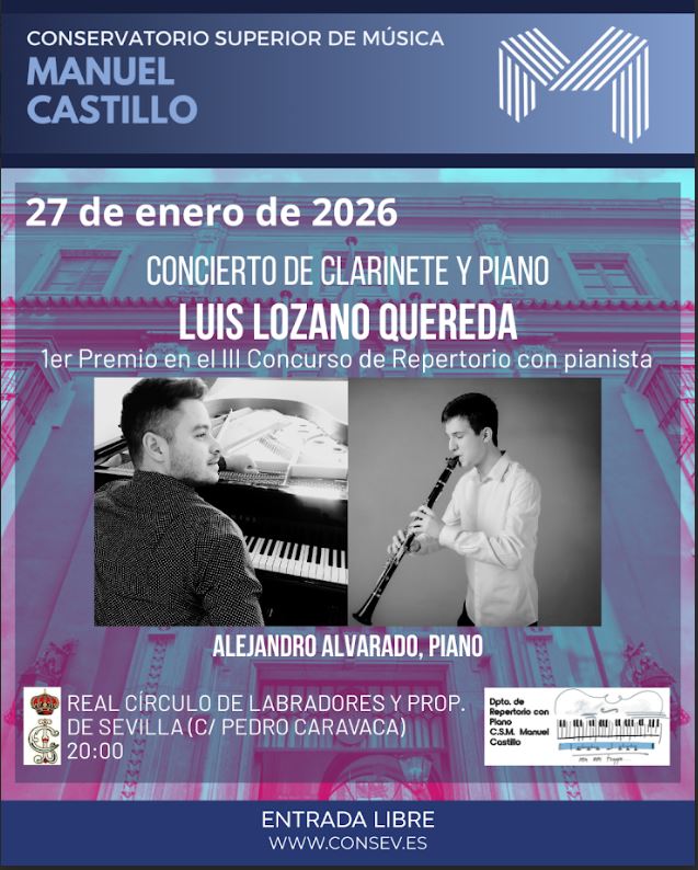 El Conservatorio Superior de Música «Manuel Castillo» anuncia la celebración del primer concierto de ganadores del III Concurso de Repertorio con pianista del pasado curso 2024-25. En esta primera ocasión