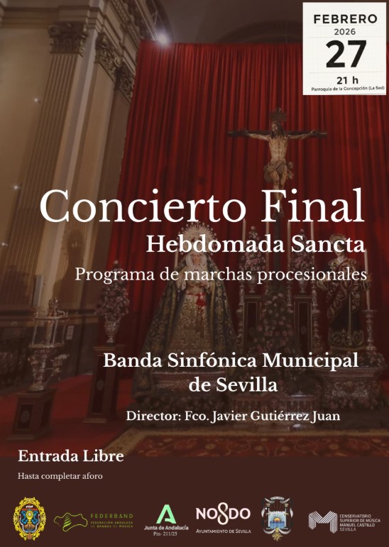 Se reprograma el concierto de la Banda Sinfónica Municipal incluido en Hebdomada Sancta: IV Congreso Académico de Música de Semana Santa para el 27 de febrero a las 21h, en