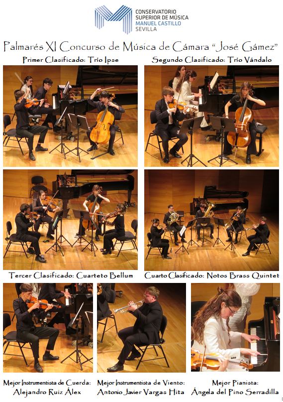 Tras una vibrante final han resultado ganadores del XI Concurso de Cámara «José Gámez»: Primer Premio: Trío Ipse Segundo Premio: Trío Vándalo Tercer Premio: Cuarteto Bellum Cuarto Premio: Notos Brass