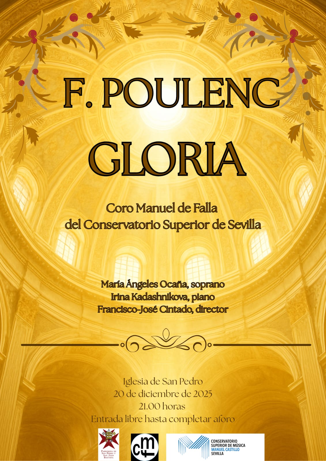 El Coro Manuel de Falla, del Conservatorio Superior de Música «Manuel Castillo», bajo la dirección de su titular Francisco-José Cintado, afronta como programa de Navidad una de las obras más bellas del siglo XX relacionada con estas fechas, la bella partitura de F. Poulenc: «Gloria».
