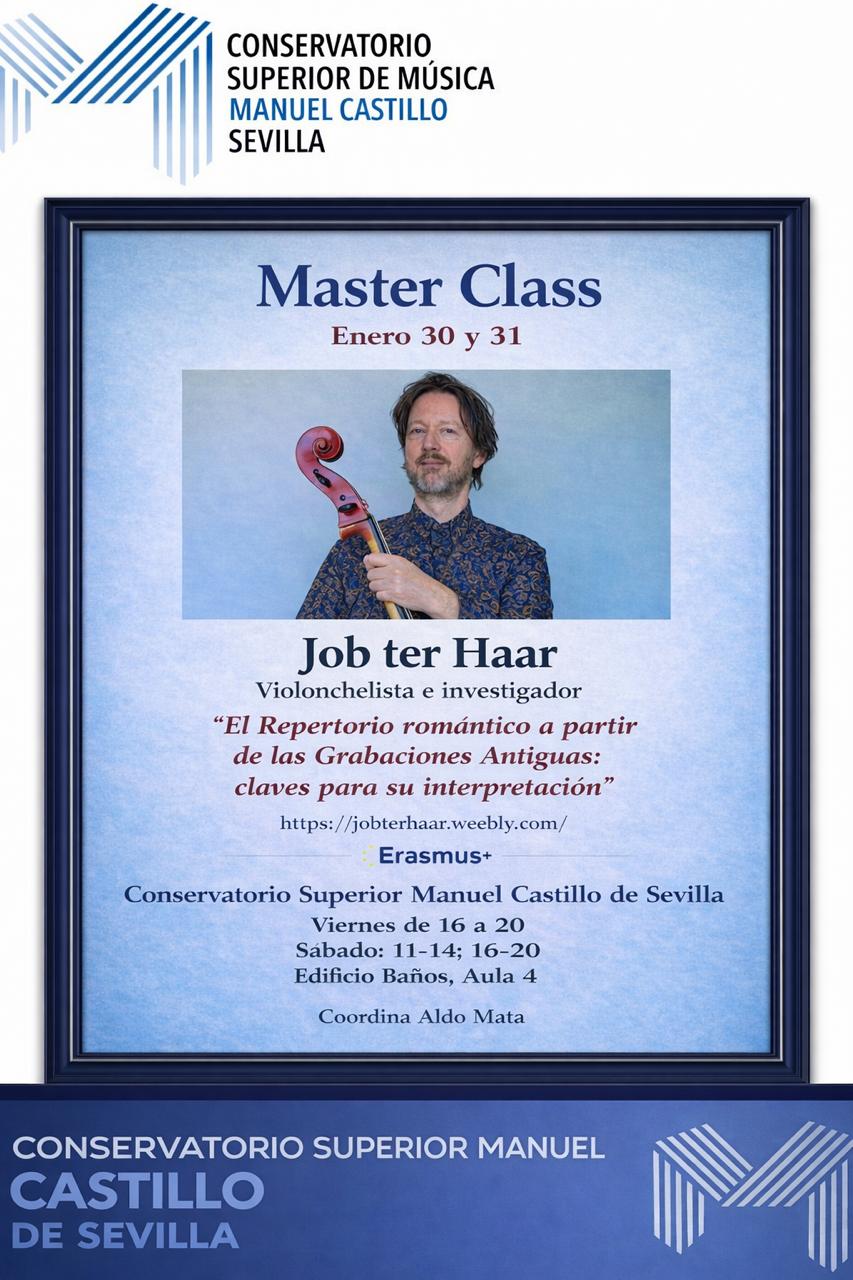 El Conservatorio Superior de Música «Manuel Castillo» anuncia la celebración de unas excepcionales clases magistrales de violonchelo con el afamado intérprete Job ter Haar, profesor en HBK de Berna (Berner Fachhochschule | Haute école spécialisée bernoise), Suiza.